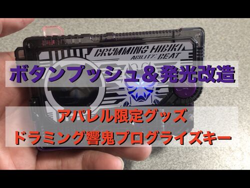 今回はアパレル限定プログライズキーにプッシュボタンとLEDを追加してDX化を試みました(^^) まずは動画をご覧ください。 youtu.be もしよければ是非チャンネル登録お願いします(^^) 今回はアパレルグッズの付録プログライズキー 改造素は 『ドラミン…